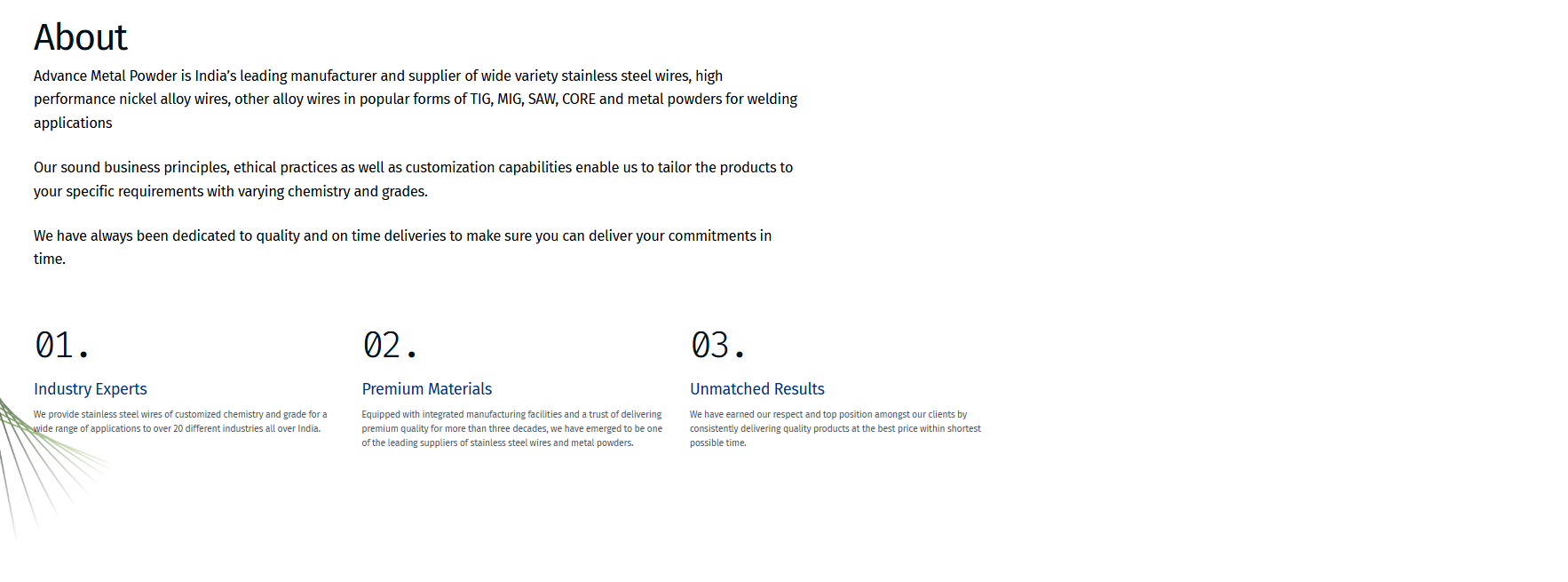"The Advance Metal Powder website is built with clarity and professionalism, helping customers understand our products and capabilities easily."