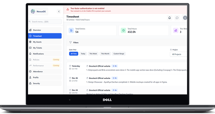 BroviFlow (internally known as NexusOS) is our custom-built AI-first ERP designed to solve one core problem: human dependency in service businesses. Built from real operational pain inside Brovitech, NexusOS connects sales, hiring, delivery, and internal operations into a single, simple system — so teams spend less time managing tools and more time executing. What It Solves: • Lead chaos & poor qualification • Manual sales follow-ups • Untracked work & timesheets • Asset mismanagement • Bandwidth & delivery uncertainty • Founder dependency for every decision Core Modules: • AI Lead Scoring & Qualification • Sales CRM & Activity Tracking • One-click Email & WhatsApp Outreach • Proposal & Estimation Engine • HR Management (Hiring, Attendance, Leaves) • Daily Check-in / Check-out & Timesheets • Asset Management • Team Bandwidth & Capacity Planning • Internal Notifications & Reminders NexusOS is not a generic ERP — it is opinionated, minimal, and built for teams that want clarity, control, and speed.